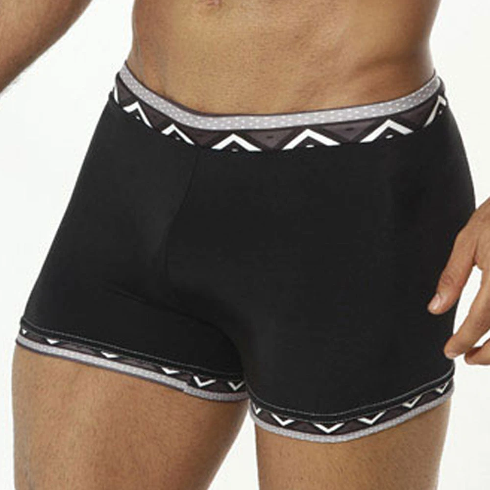 Introducing the best swim boxer! The Cover Male Tribal Black Swim Boxer Black fills the needs for anyone searching for a great swim boxer. The Tribal accents around the legs and waistband offers a seductive look while offering a unique fashion statement. The solid black color is mysterious and sensual for all those to admire. The Cover Male Tribal Black Swim Boxer Black is the must have for collection!