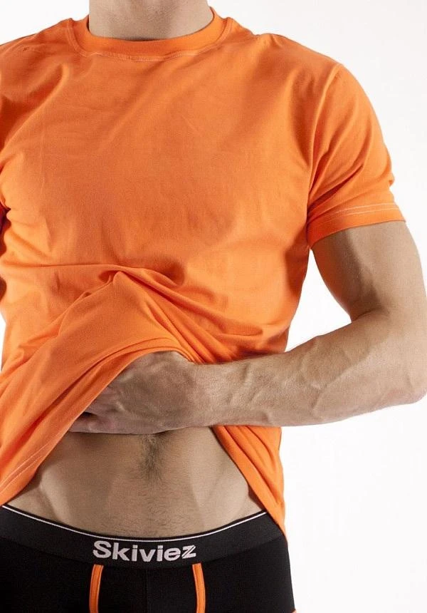 This crew neck is made from a soft and stretchy blend of cotton and spandex to give it great fit and comfort. Made of a super soft blend of cotton and spandex. Available in 10 different colors.